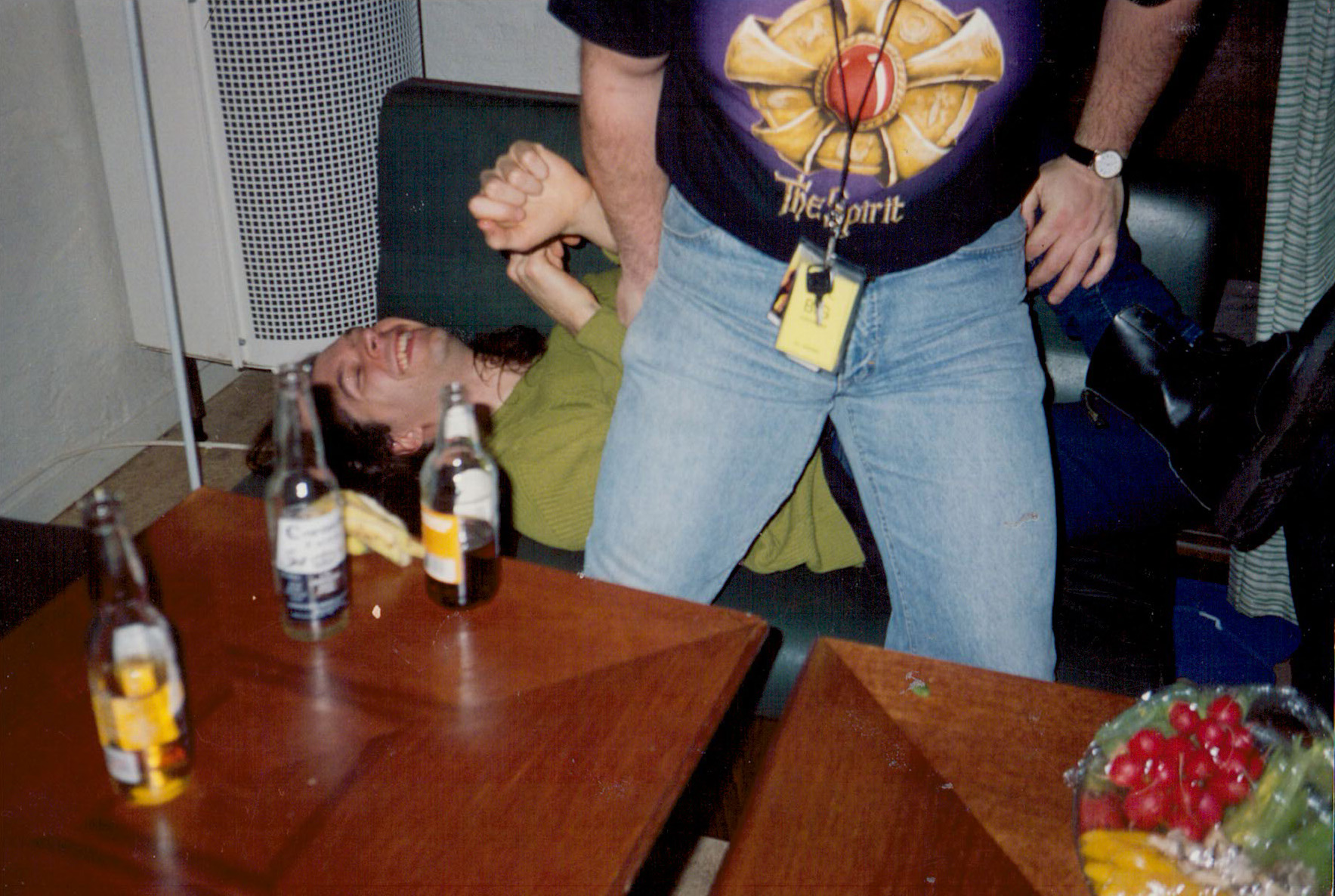 We were shown to this corridor and given free beer. A lot less groupies than usual by the way. Not like Skid Row’s backstage area. Mr Big only had maybe 10 groupies and they weren’t as slutty as Skid Row’s.